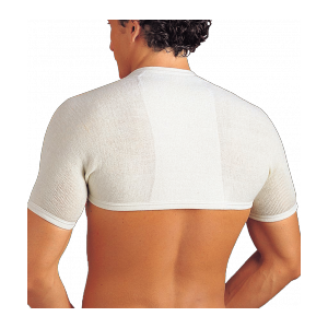 Coprispalle anatomico per affezioni reumatiche articolari. Realizzato impiegando lana e morbidissimo filato elastico. La sua forma anatomica e il pannello centrale in maglia elasticizzata nelle due direzioni (orizzontale e verticale) consentono la massima aderenza e vestibilità. Il tessuto elastico isolante rallenta lo scambio termico con l’ambiente esterno. Dispositivo medico che mantiene il calore naturale dell’organismo. Va indossato avendo cura di posizionare la banda in lana rinforzata al centro della colonna vertebrale.